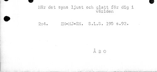 //// När det syns ljust och glatt för dig i //// världen //// 2:4. EN-HJ-SN. S.L.S. 195 s.92. //// ÅBO //// 5 • . . ////