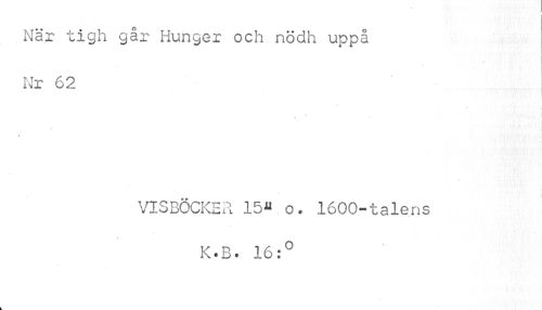 //// När tigh går Hunger och nödh uppå Nr 62 //// i //// ! //// - //// t //// VISBÖCKER 15» o. 1600-talens //// K.B. 16:° ////