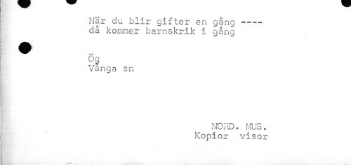//// När du blir gifter en gång //// då kommer barnskrik i gång ? * //// Vanga sn //// NORD. MUS. Kopior visor ////