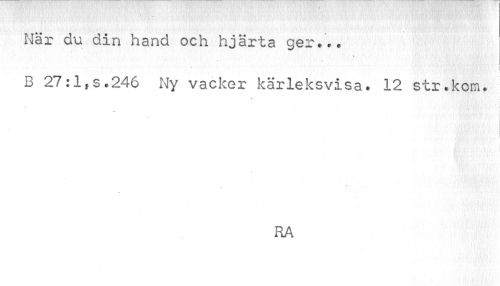 //// När du din hand och hjärta ger... B 27:1, s.246 Ny vacker kärleksvisa. 12 str.kom. //// RA ////