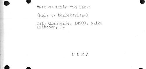 //// "När du ifrån mig far." (Mel. t. kärleksvisa.) //// Dal. Grangärde, 14900, s.120 Eriksson, L. //// U L M A ////