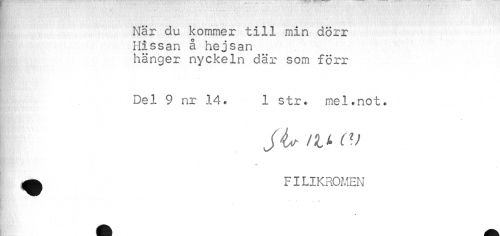 //// » //// « • '*»•'". I . .. < . //// När du kommer till min dörr //// Nissan å hejsan //// hänger nyckeln där som förr //// Del 9 nr 14. 1 str. mel.not. //// Jir hl cv //// A FlLIKROMEN //// . //// \ ////