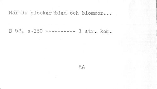 //// När du plockar :blacl och blommor... //// i j //// f //// B 53, s.160 ——-------1 str. kom. ! //// 0 //// ! //// : //// I //// RA ////