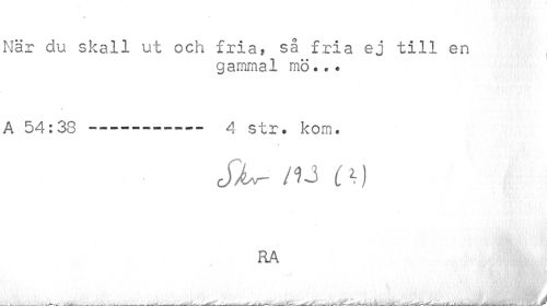 //// t //// När du skall ut och fria, så fria ej till en //// gammal mö•.• //// * //// A 54:38 ----¦------- 4 str. kom. //// i //// RA //// Å' //// ... — . ...„..,......------——_,—tx^mu____ . .y ////