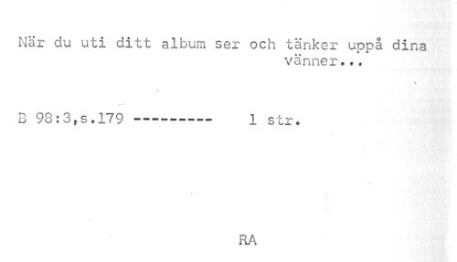//// När du uti ditt album ser och tänker uppå dina //// vänner... //// 0" //// \ //// B 98: 3, s. 179---- 1 str. //// //// /RA ////
