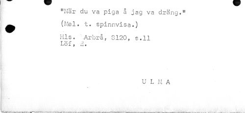 //// "När du va piga å jag va dräng." //// ^^ (Mel. t. spinnvisa.) //// Hls. -Arbrå, 8120 y s.ll //// I of //// •»-'O x , ^ • //// % //// U L M A //// % //// » //// ----—----W^-----___-----M____i____ .......^ _ _____ ____ ////