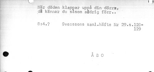 //// När döden klappar uppå din dörrg, da känner du såsom aädrig förr.. //// 8:4.? Svenssons saml.häfte Nr 29.s.128- //// 129 ////