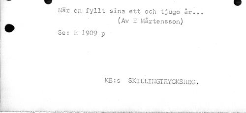 //// När en fyllt sina ett och tjugo år... //// (Av E. Mårtensson) //// ® Se: E 1909 p //// KB:s SKILLINGTRYCKSREG. ////