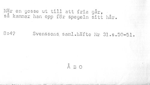 //// När en gosse ut till att fria går, så kammar han opp för spegeln sitt hår. //// 3:4? Svenssons saml.häfte Nr 31.s.50-51. //// * //// ÅBO //// „_____ _ ... ____ a _ >____- - —- - _____L^i^^ ' i niidtt^^ —-- _____—ik'i-. - — -----• ////