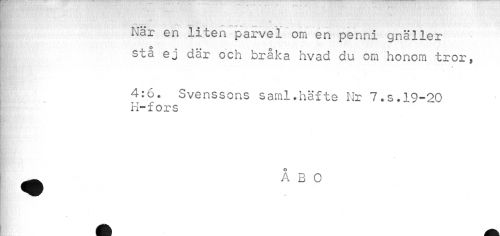 //// När en liten parvel om en penni gnäller stå ej där och bråka hvad du om honom tror, //// 4:6* Svenssons saml.häfte Nr 7.s.19-20 K-fors //// ÅBO ////