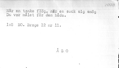 //// /oro //// När en tanke flög, när en suck sig smög //// Du var målet för dem båda. i //// T //// 1:8 BO. Brage 12 nr 11. //// r i //// • . • i i i //// , i //// ÅBO //// i //// i //// i //// i ////
