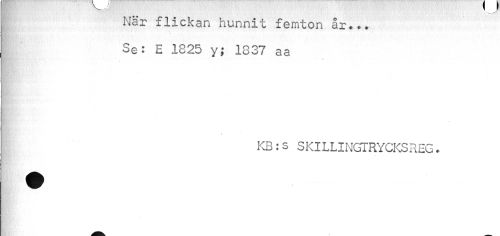 //// y //// När flickan hunnit femton år... Se: E 1825 y; 1337 aa //// V //// V //// KB:s SKILLINGTRYCKSREG. ////