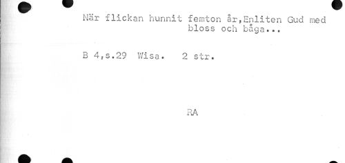 //// När flickan hunnit femton år,Enliten Gud med //// bloss och båga... //// i //// B 4,3.29 Wisa. 2 str. //// RA ////