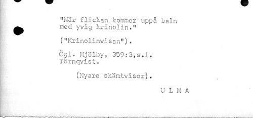 //// « //// "När flickan kommer uppå faaln //// •med yvig krinolin." //// ("Krinolinvisan"). //// ¦ //// Ögl. Mjölby, 359:3,s.l. Törnqvist. //// B //// (Nyare skämtvisor)« //// ¦ //// U L M A //// mm§.... . //// aaKiJmvimw.v, •• w ; , th> ¦¦ .. „ , -^vT-"^W-^-r-^-v—------^^.AiMu^til^MK^^^^'-1-'-^^----——KOM----_ ^--j,____—r--K,__-----—1*1! énért---—----—-------k- ------- ////