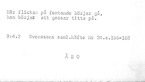 //// När flickan på femtonde börjar gå* hon börjarv att gossar titta på, //// v //// 9:4.? Svenssons saml.häfte Nr 24.s.166-168 //// Å B O //// t //// .. . . .... ////