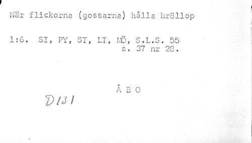 //// I //// När flickorna (gossarna) hålla bröllop ; //// i //// 1:6. SI, PY, ST, LT, MÖ, S.L.S. 55 | //// s. 37 nr 28. //// I //// ! //// Å B O //// P/J //// /
