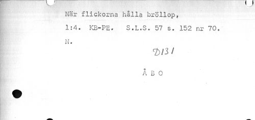 //// När flickorna hålla bröllop, //// 1:4. KB-PE. S.L.S. 57 s. 152 nr 70. //// N. //// «2>/3 //// /ÅBO //// » ////