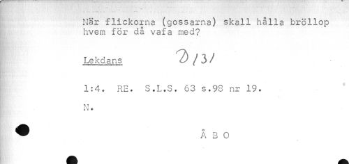 //// " ' ' ¦¦ "'" .... //// När flickorna (gossarna) skall hålla bröllop //// hvem för då vafa med? //// Lekdans //// 1:4. RE. S.L.S. 63 s.98 nr 19. N. //// ~ ÅBO //// t //// X //// * ////