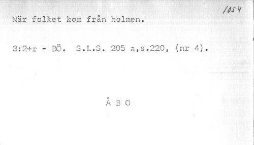//// / 6/O ( //// c ' ' När folket kom fran holmen. //// 3:2+r - 30. S.L.S. 205 a,s.220, (nr 4). //// f . //// i i t f //// t i //// i i //// ÅBO //// | ////