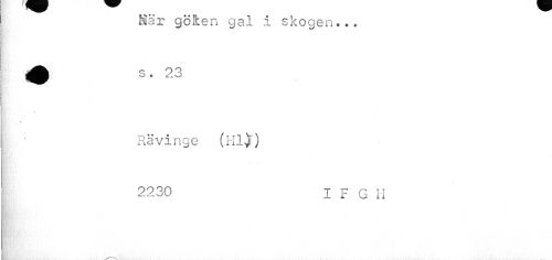 //// Här göten gal i skogen... ^jl s. 23 //// Rävinge (Hl)'} //// 2230 I F G H ////