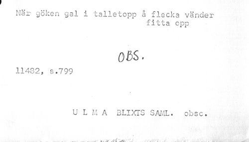 //// När göken gal i talletopp å flecka vänder //// fitta opp //// 0 3S. //// 11432» s.799 //// U L M A BLIXTS SAML. obsc. ////