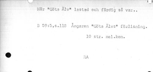//// När "Göta Älv" lastad och färdig så var.. //// B 59:5»s.118 Ångaren "Göta Älvs" förlisning. //// 10 str. mel.kom. //// * //// - //// tA ////