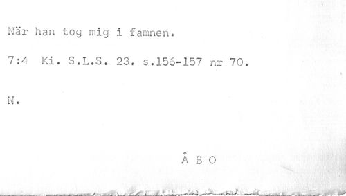 //// När han tog mig i famnen. //// 7:4 Ki. S.l.S. 23. s.156-157 nr 70. //// V. //// N. //// ÅBO ////