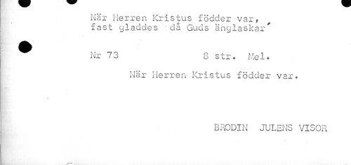 //// När Herren Kristus födder var, fast gladdes •då Guds änglaskar' //// //// /Nr 73 8 str. Mel. //// När Herren Kristus födder var. //// • -V //// BRODIN JULENS VISOR //// „ I ////