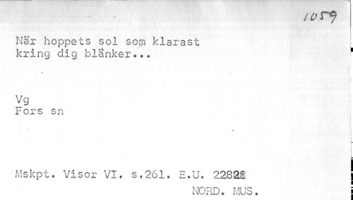 //// / o rf //// När hoppets sol som klarast //// kring dig blänker*.. * //// • - //// Vg //// Fors sn //// « //// Mskpt. Visor VI. s.261. E.U. 2282£ j //// NORD. MUS. j ////