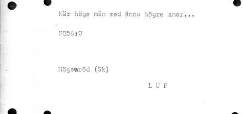 //// När höge män mecl ännu högre anor*.. //// \ //// 2256i 3 //// Högswröd (Sk) //// L U F ////