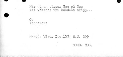 //// När hönan värper ägg på ägg clet varsnas uti bondens skägg... //// Ög //// Tannefors //// Mskpt. Visor I.s.153. E.U. 399 //// NORD. MUS. ////