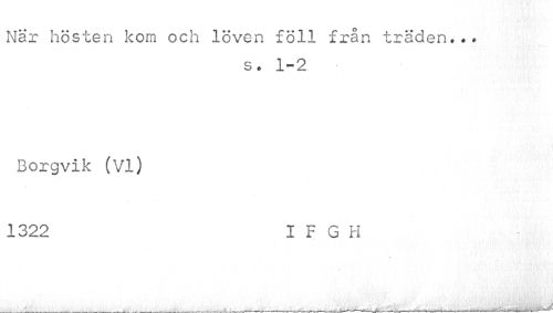 //// När hösten kom och löven föll från träden... //// s. 1-2 //// Borgvik (VI) 1322 IFGH //// .___ ___M_____. ----.» ,. .A ... . ,----—-------—---v-- —------W""*-----—¦ ////