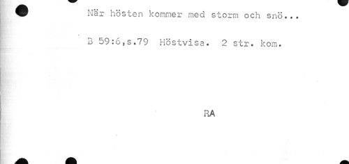 //// W När hösten kommer med storm och snö... //// « //// 3 59:6,s.79 Höstvisa. 2 str. kom. //// RA //// f ////