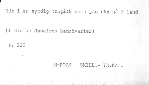 //// När i en syndig tragisk hamn jag ska gå i land //// (i Rio de Janeiros hamnkvarter) s. 120 //// H-FORS SKI LLTR. KAT. //// //// /
