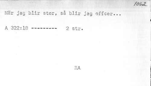 //// När jag blir stor, så blir jag offcer... //// i //// : //// A 322:18 ---- 2 str. //// c //// r //// DA = //// i. | //// I ¦ ////