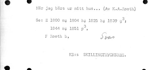 //// När jag bärs ur mitt hus... (Av K.A.Rooth) //// Se: E 1800 m; 1804 h; 1825 h; 1839 g3; //// 1844 m; 1851 p3, //// F Rooth b, h Ir&s* //// KB:s SKILLINGTRYCKSREG. //// m ^éint^l ////