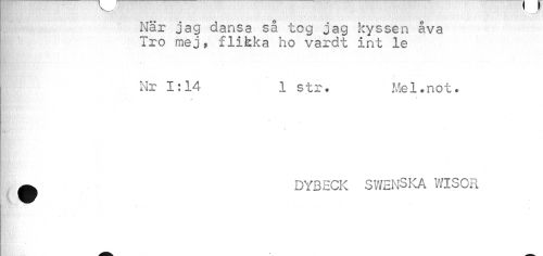 //// När jag dansa så tog jag kyssen åva Tro mejf flifcka ho vardt int le //// Nr 1:14 1 str* Mel.not* //// A //// •DYBECK SWENSKA WISOR ////