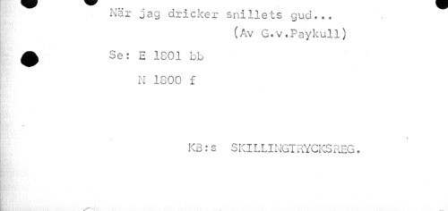 //// När jag dricker snillets gud..» //// (Av G.v.Paykull) //// 0 Se: E 1801 bb //// N 1800 f //// KB:s SKILLXNGTRYCKSREG. ////
