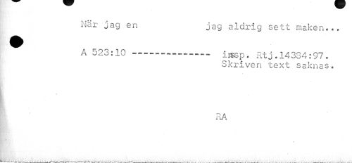 //// När jag en jag aldrig sett maken... //// A 523:10 —...... irssp. Rtj .14334:97 . //// Skriven text saknas. //// |. '' RA //// Kjj « //// IS^LM____ . , I^V -----*----—------——----'——------.. ..... ^ — — • ----. . ////