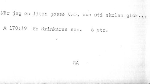 //// Mär jag en liten gosse var, och uti skolan gick... A 170:19 En drinkares son. 6 str. //// a //// RA //// 3] - A 4'j JK ' ¦¦ ////