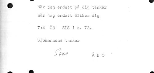 //// ® När jag endast på dig tänker //// när jag endast älskar dig //// 7:4 ÖB SLS 1 s, 73. Sjömannens tankar //// 3 lnV> ÅBO ////