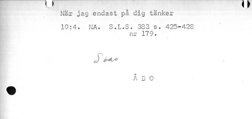 //// .. ' vr //// När jag endast på dig tänker //// 10:4. NA. S.L.S. 383 s. 425-428 //// nr 179. //// J //// ÅBO //// « //// % ////