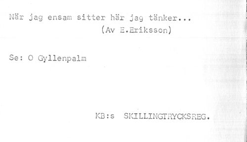 //// När jag ensam sitter här jag tänker... //// (Av E.Eriksson) ] //// Se: O Gyllenpalm //// i //// £ //// | //// i //// • i //// i //// i //// KB:s SKILLINGTEYCKSREG. //// i i c //// a j //// i ////