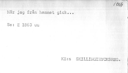 //// / Ofpy //// När jag från hemmet gick,,. //// i //// ..... • ... ..,: «. .«-*•.: ..... i //// \ //// Se; E 1363 uu I //// i ^ //// l //// r //// > //// v //// if-i llSBv i * ... i //// . //// j» //// KB:s SKILLINGTRYCKSREG. //// t i ////