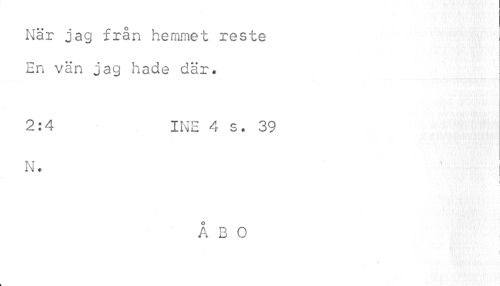 //// När jag från hemmet reste En vän jag hade där. //// 2:4 INE 4 s. 39 //// N. | //// ÅBO //// ¦i : / - ! ////