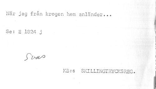 //// När jag från krogen hem anländer... //// ! //// i ¦ //// j //// i //// KB:s SKlLLINGTRYCKSREG. j //// i ////