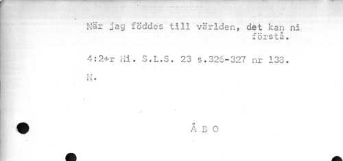 //// i « " ¦ ..... " -...... - - * ' " - . ... //// - -...... - //// i //// H^lj //// När jag föddes till världen, det kan ni //// ri ° //// | forsxa* //// 4:2+r Hi. S.L.S. 23 s.326-327 nr 133. //// I M //// N . //// » //// 1 ////