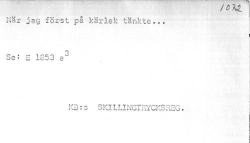 //// / V KL //// När jag först på kärlek tänkte... //// i //// Se: E 1353 e3 //// KB:g SKILLINGTRYCKS REG. ////