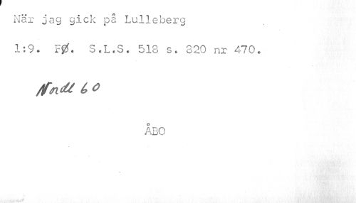 //// När jag gick på Lulleberg //// 1:9. F0. S.L.S. 518 s. 820 nr 470. //// /ft, O //// ÅBO ////