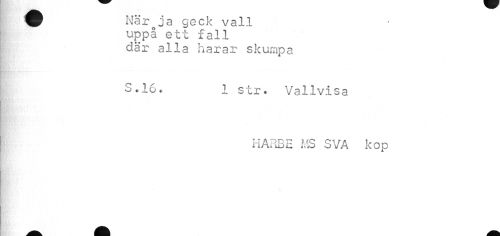 //// ^ Näroja geck vall //// uppå ett fall där alla harar skumpa //// S.16. 1 str. Vallvisa //// HARBE MS SVA kop ////